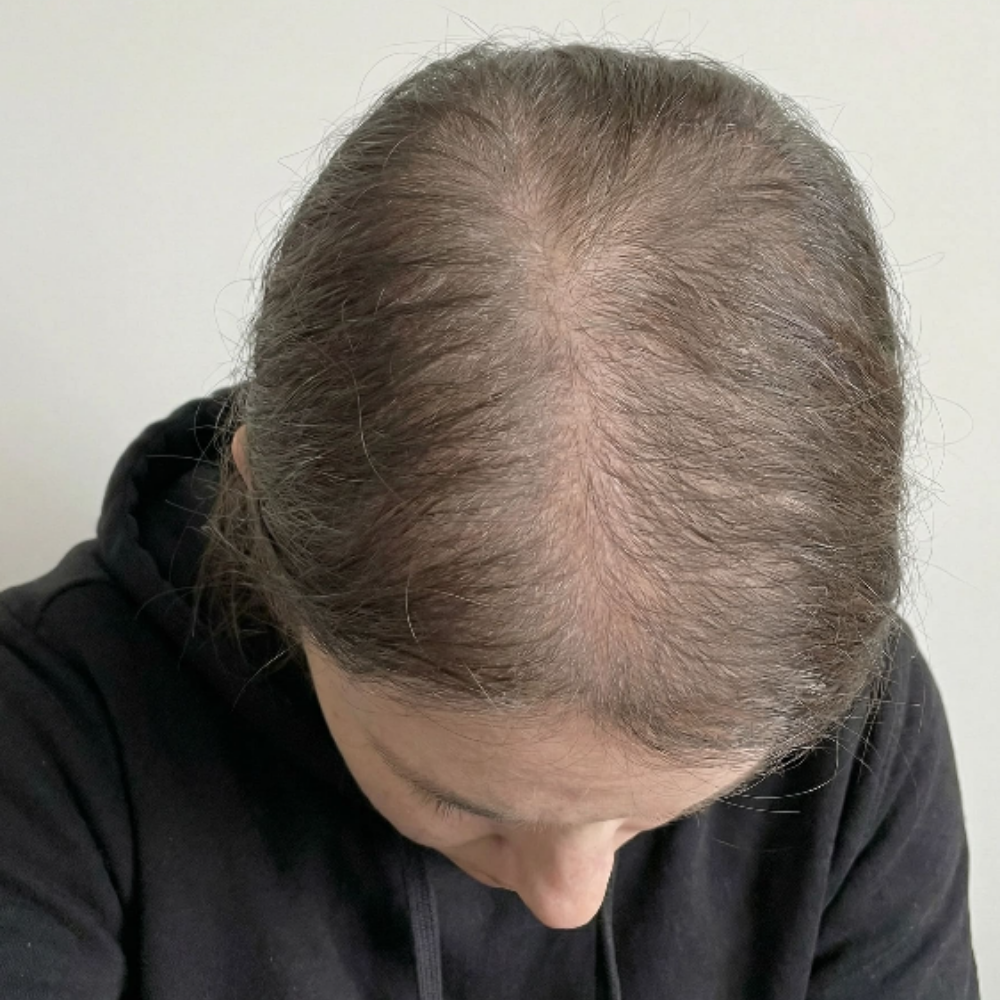 Die Haardichte ist vollständig wiederhergestellt. Der Scheitel ist ausgefüllt, das Haar ist dicht, glänzend und über die gesamte Fläche hinweg gleichmäßig.