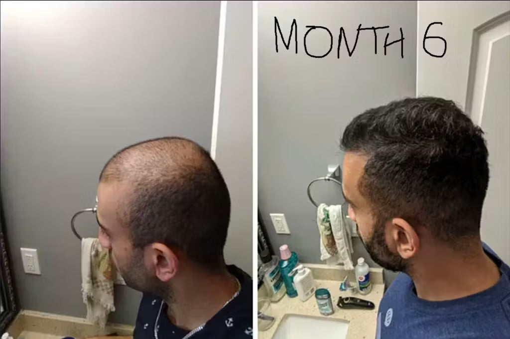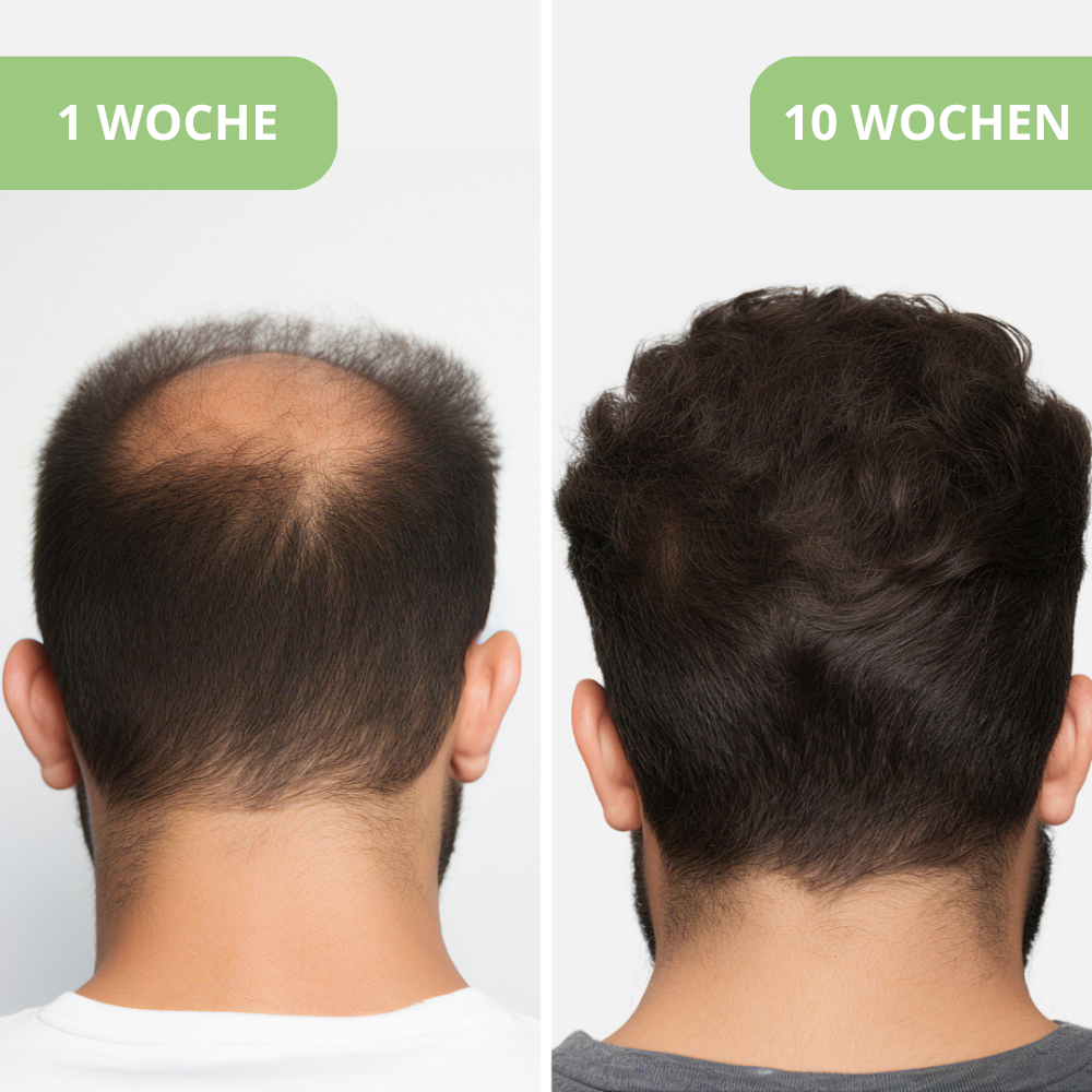 Bei täglicher Anwendung verlangsamt sich der Haarausfall bereits nach 3 bis 4 Wochen. Nach 6 bis 8 Wochen wirkt das Haar dichter und kräftiger. Nach etwa 3 Monaten setzt ein sichtbarer Nachwachs ein, und nach 6 Monaten sind die Veränderungen deutlich erkennbar.