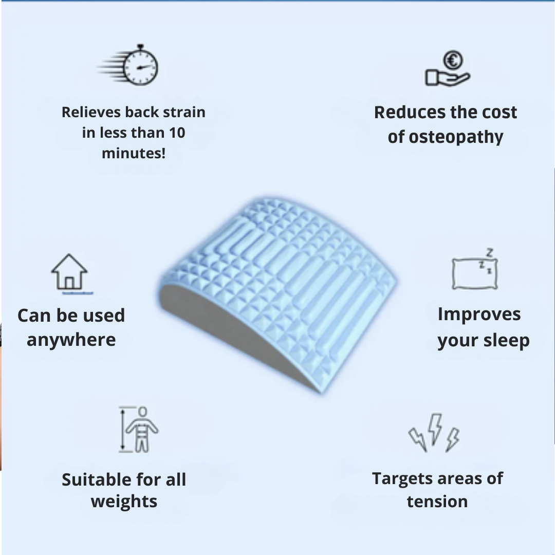 With its lumbar support, this pillow stretches your back to the optimal angle of 26°, giving your tense vertebrae the rest they need to relax, realign, and release the nerves that have been compressed and inflamed by years of pressure.