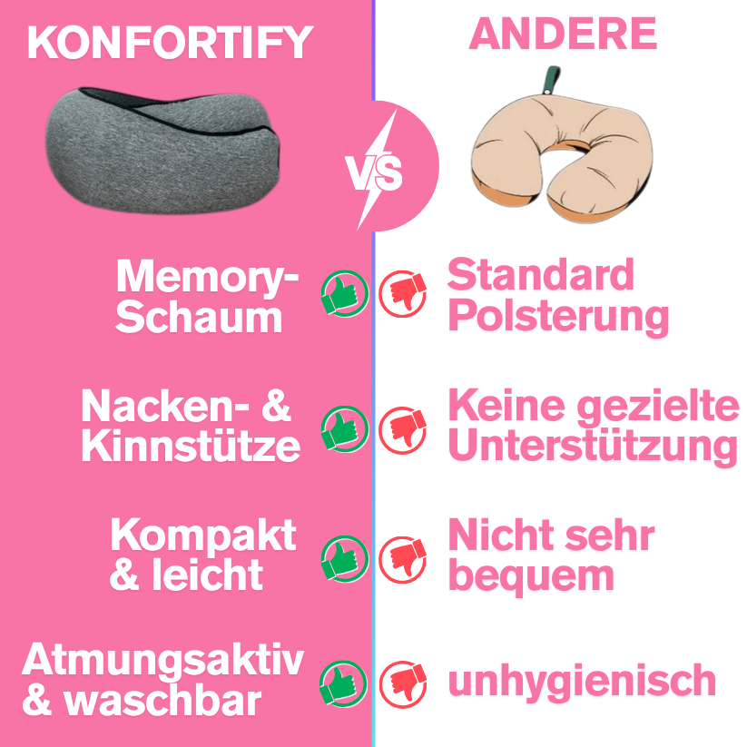 Der Memory-Schaum des Kissens passt sich jeder Position an und bietet perfekten Halt. Kein Nackensteif mehr, egal wo Sie sitzen!